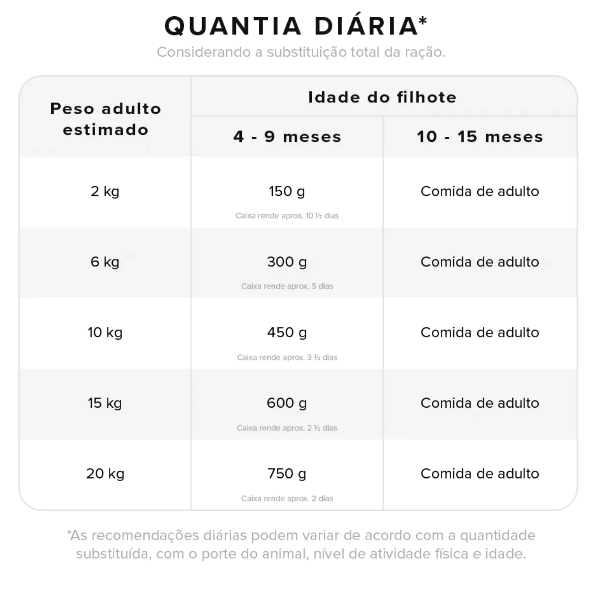 | 2 kg | 150 g | Comida de Adulto |