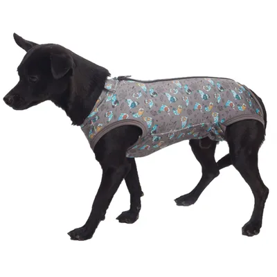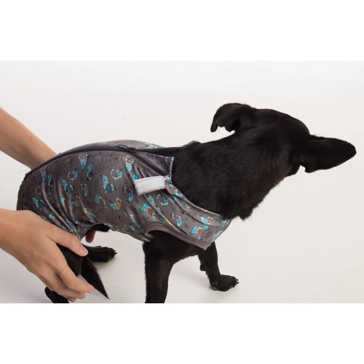 Roupa pós cirúrgica unissex Wein Pets, servem tanto para machos, com abertura opcional para que o órgão genital fique exposto facilitando a micção quanto para procedimentos em fêmeas, cobrindo toda a cadeia mamária e região abdominal.