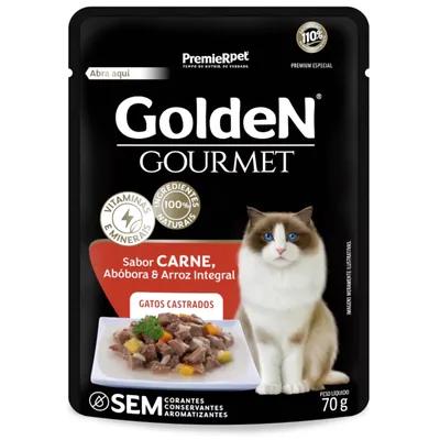 Sachê GoldeN Gourmet Gatos Castrados Carne, Abóbora e Arroz Integral 70g