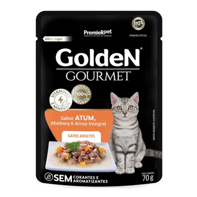 Sachê GoldeN Gourmet para Gatos Adultos Sabor Atum, Abóbora e Arroz Integral 70g