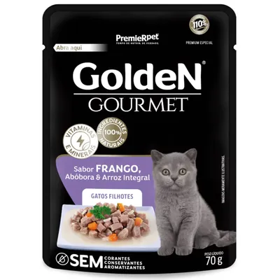 Sachê GoldeN Gourmet para Gatos Filhotes Sabor Frango, Abóbora e Arroz Integral 70g