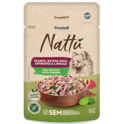 Sachê PremieR® Nattu para Cães Adultos Porte Pequeno Sabor Frango, Batata-doce, Espinafre e Linhaça 85g