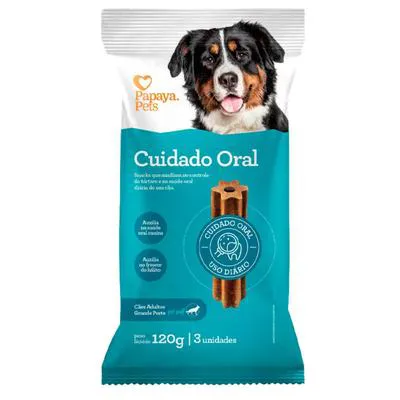 Snack Papaya Pets Cuidado Oral para Cães Adultos de Porte Grande 120g