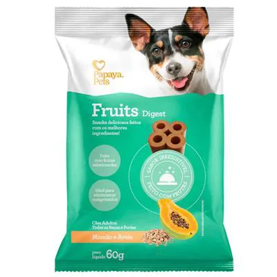 Snack Papaya Pets Fruits Digest para Cães Adultos Sabor Mamão e Aveia 60g